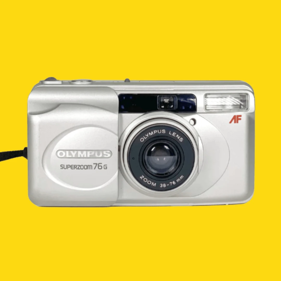 The Olympus Superzoom 76G Film Camera is a easy-to-use camera that is perfect for beginner photographers. It features a 35mm zoom lens with a focal length range of 28-80mm and a wide-angle lens with a focal length of 28mm. It has automatic exposure control as well as manual exposure and flash settings. Additionally, it is equipped with an autofocus system and an easy-to-use LCD display.